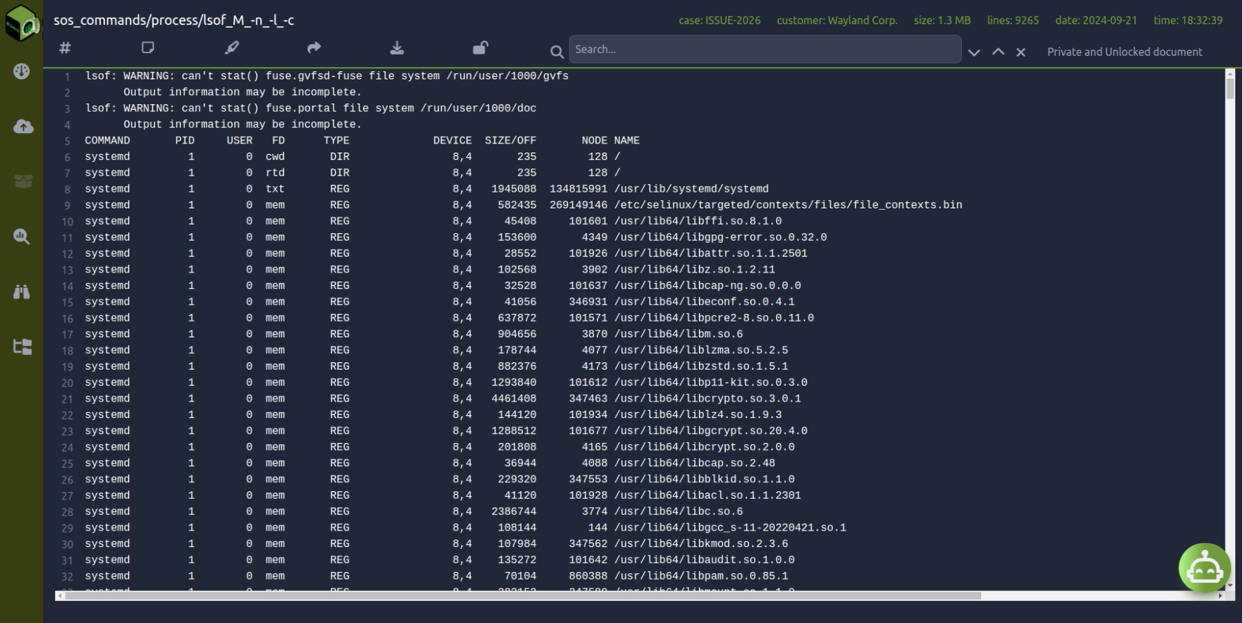 When an sos report is generated, it outputs an encrypted and compressed tar file. Inside this file lies a well-organized structure, reflecting the myriad Linux sub-systems from which the data is collected.